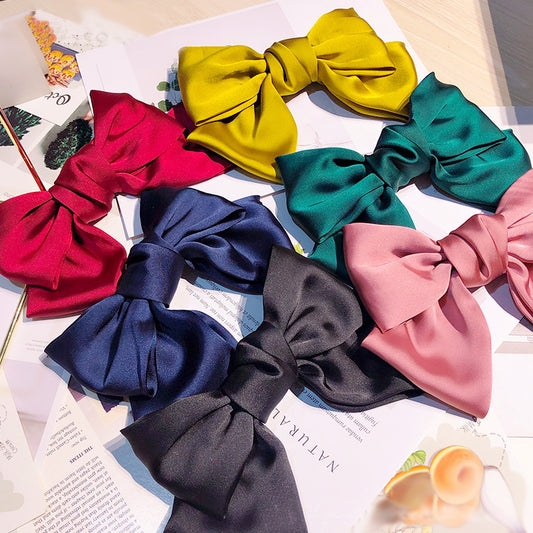 Two layers satin big bow knot hair spring clips (5 pcs)
