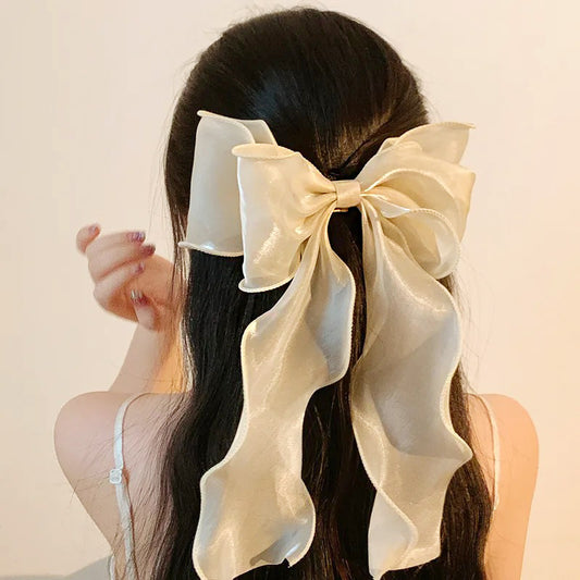 Wholesale price headwear women big long tail bow hair clips (5 pcs)