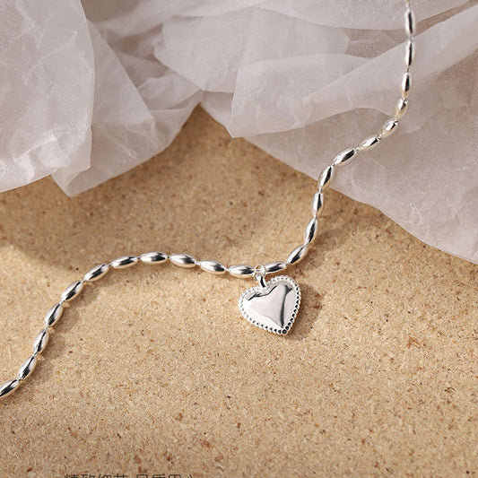 Silver 925 rice beaded chain heart pendant bracelet Set of 5