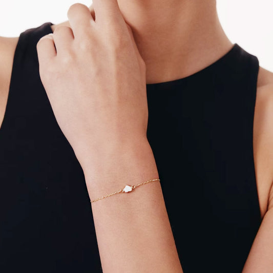 925 silver gold tiny rose flower with zirconia heart bracelet Set of 5