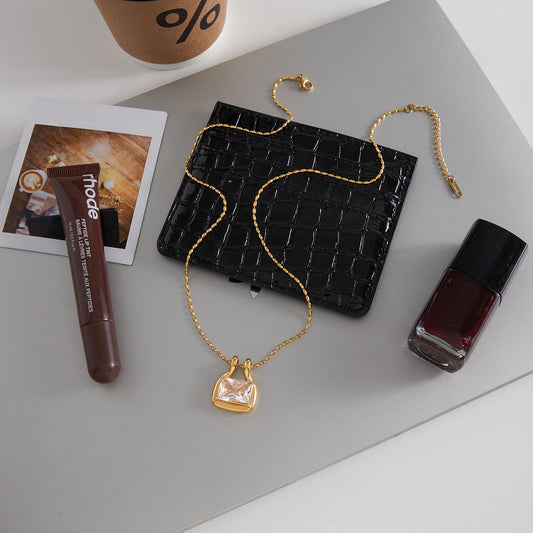 • 18k gold plated titanium steel zircon pendant necklace flat lay with square cut stone