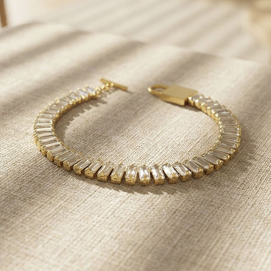 • 18K gold plated stainless steel tennis zircon bracelet size guide with toggle clasp