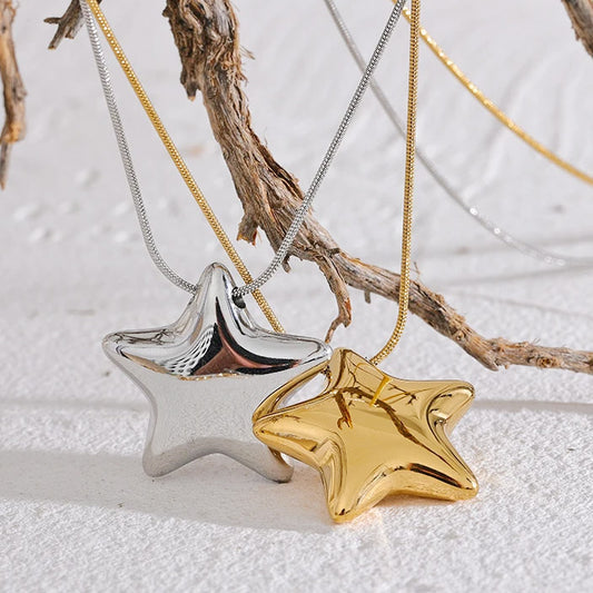 Waterproof PVD plated stainless steel star pendant snake chain necklaces Set of 5