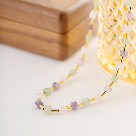 Stainless steel multicolor square natural stones beaded boho necklaces Set of 5