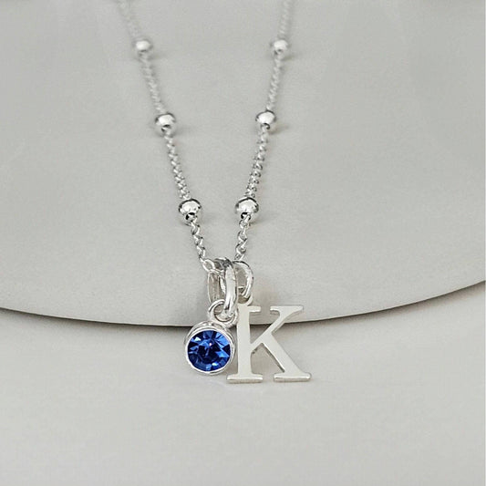26 Alphabet Letter Necklace with Elegant Birthstone Accent Set of 5