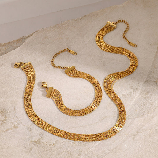 Gold Layered Chain Necklace and Bracelet Set Stainless Steel Stackable Jewelry for Girls Set of 5