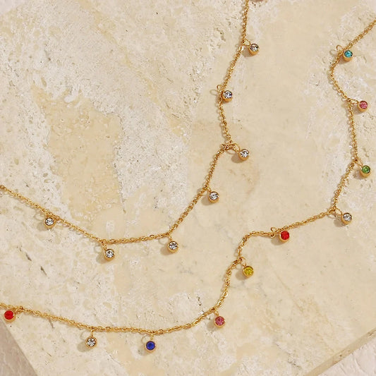 Stainless steel women charm dainty gold multicolour zircon dangle necklace Set of 5
