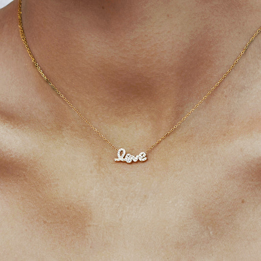 Set of 5 Dainty Gold Love Necklace with Cubic Zirconia Pendant in Stainless Steel Zircon Love Design