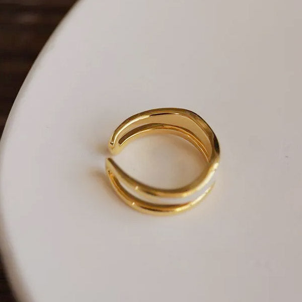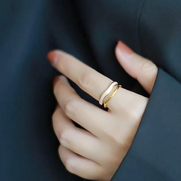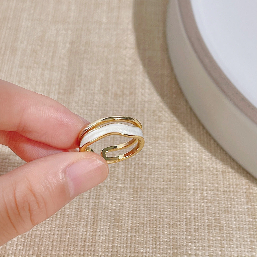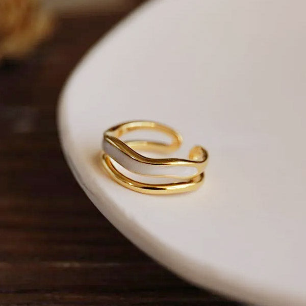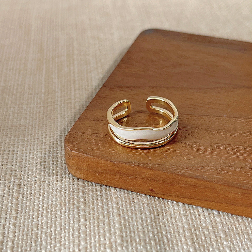 14k gold plated double layer white enamel wave open adjustable rings Set of 5