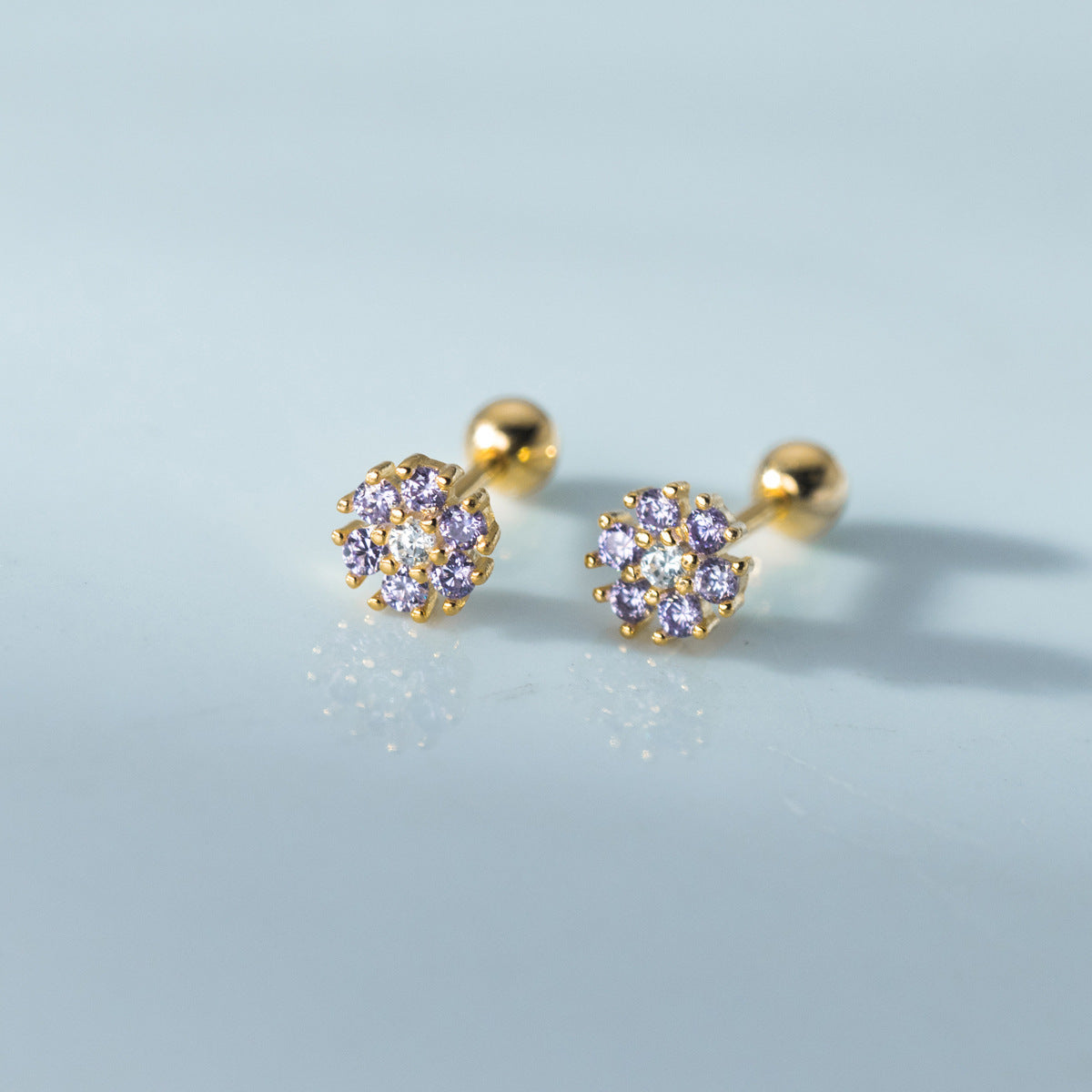 925 silver colorful cubic zirconia flower stud earrings (5 pairs)