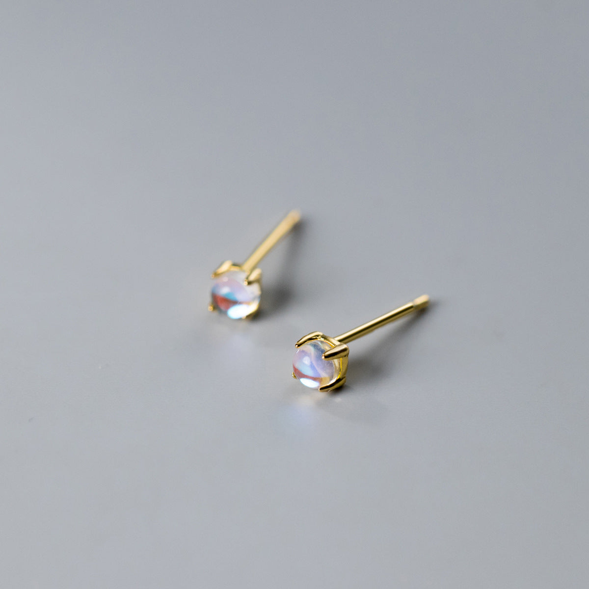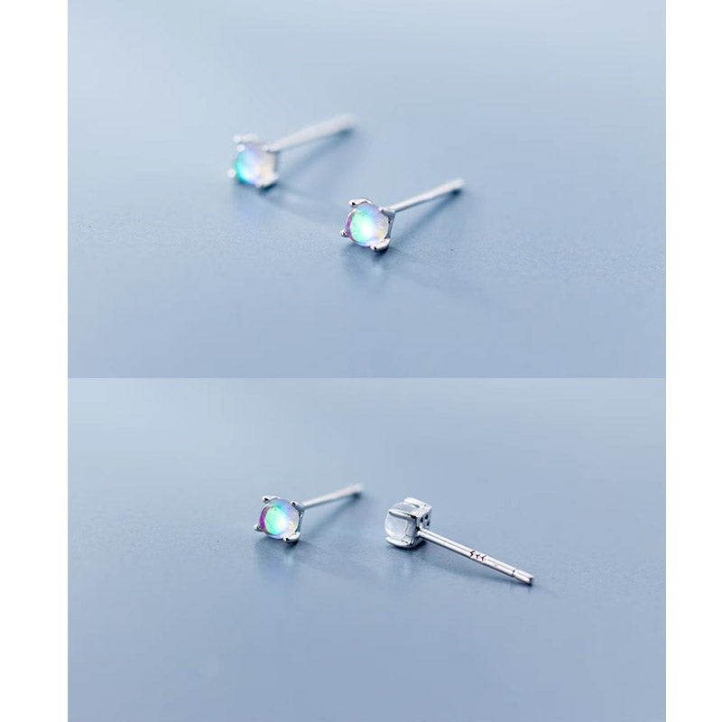 925 silver mini rainbow moonstone stud earrings (5 pairs)