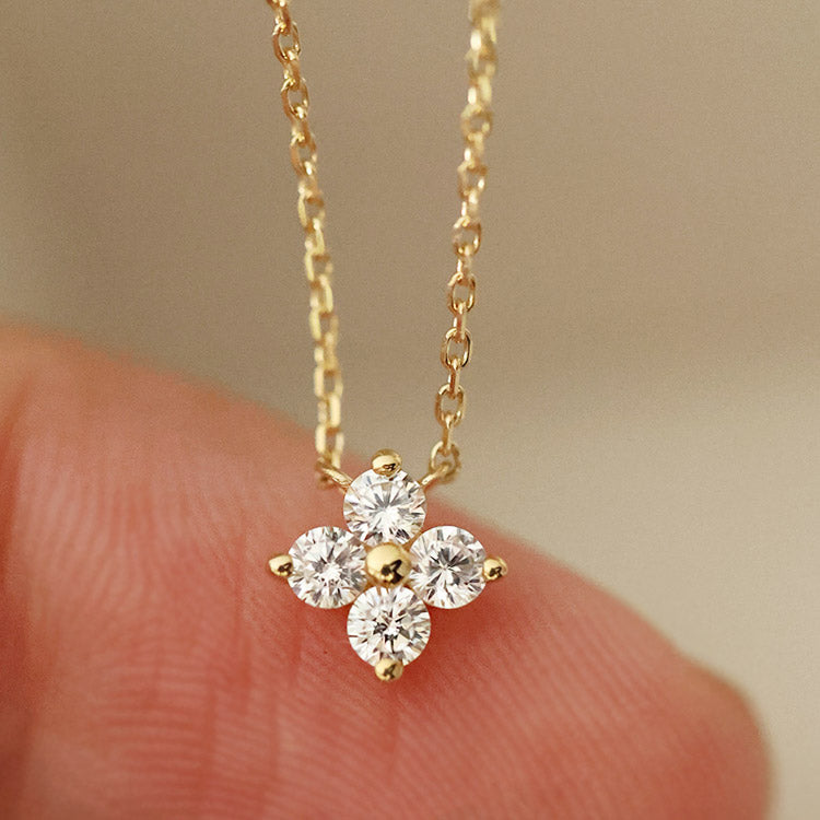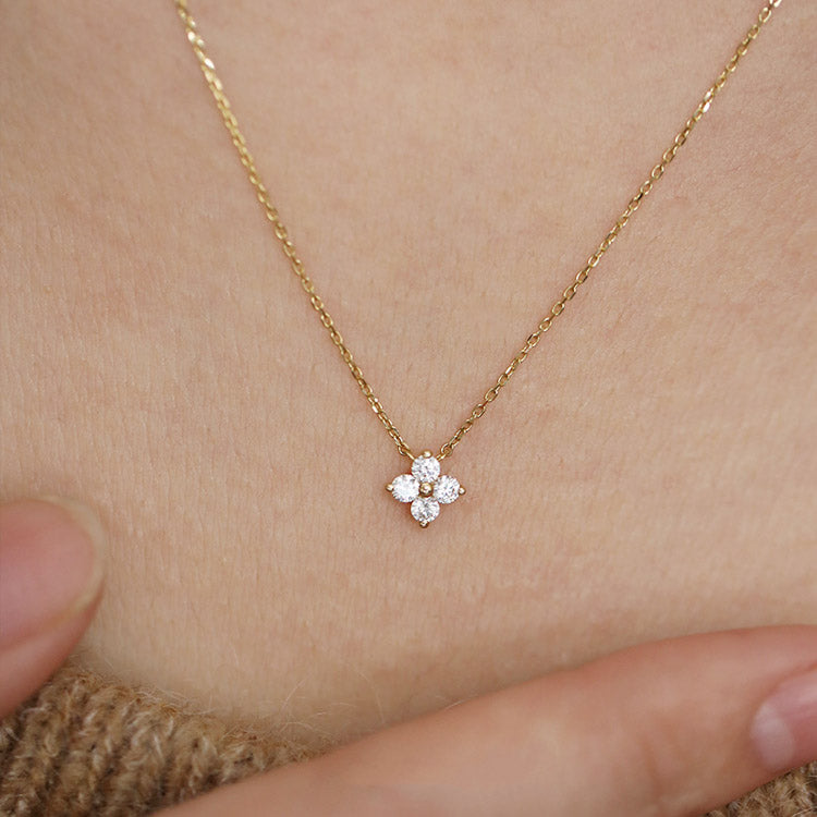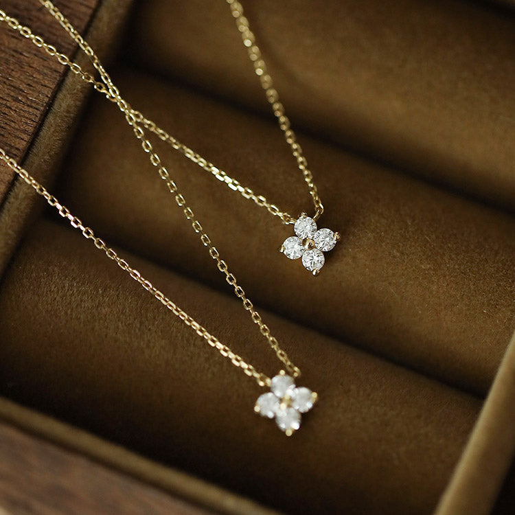 925 silver zircon tiny four-leaf flower pendant necklace set of 5