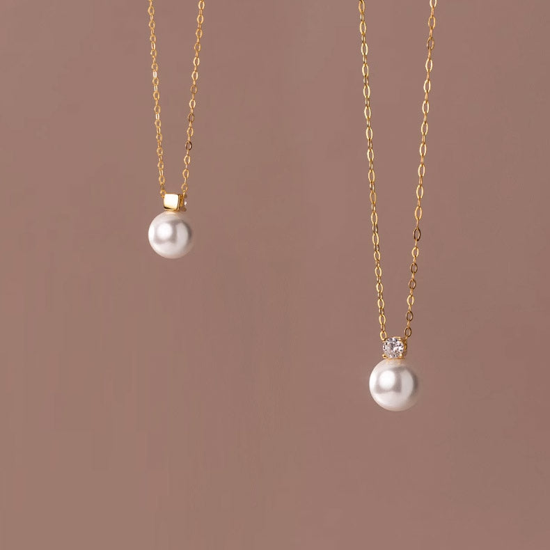 925 single pearl with cubic zirconia choker necklace Set of 5