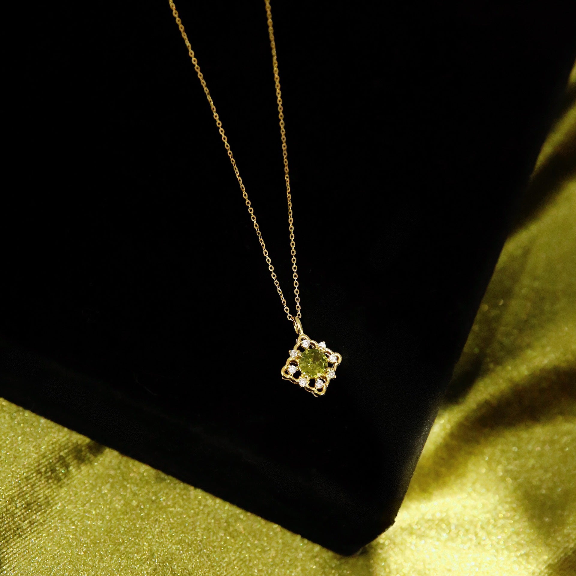 The necklace showcases a minimalist yet elegant design, focusing on the vivid green zircon that offers a fresh, modern look.