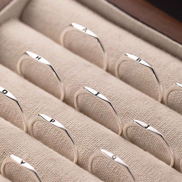 925 sterling silver 26 letter alphabet adjustable rings Set of 5