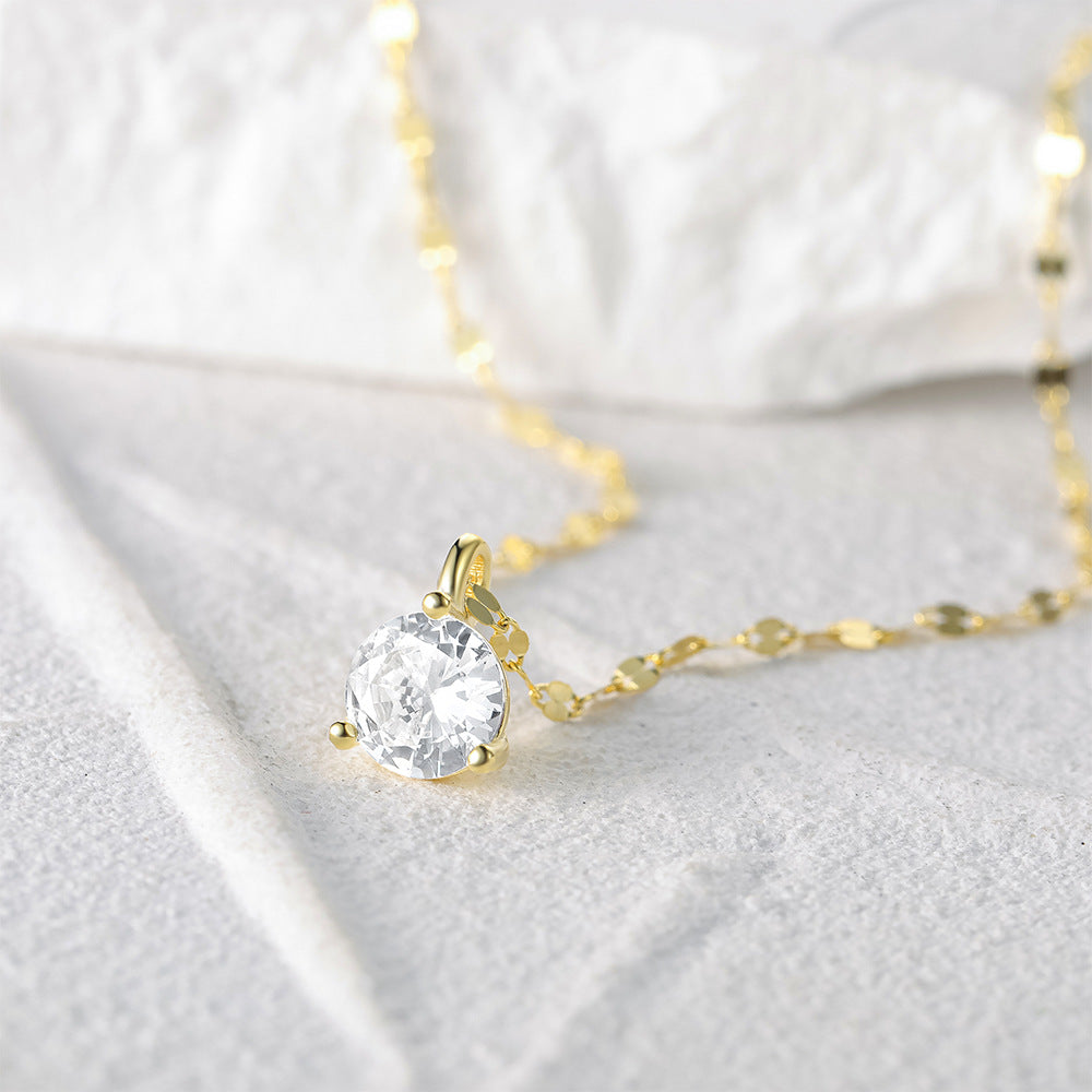 925 sterling silver 3 prongs single 6mm stone clavicle chain necklace Set of 5