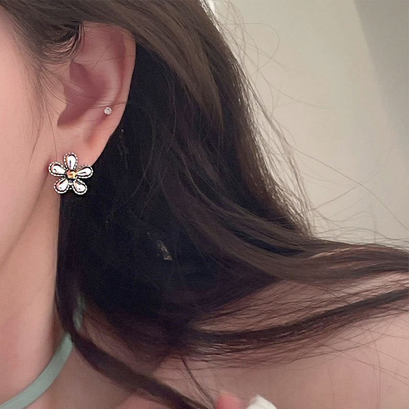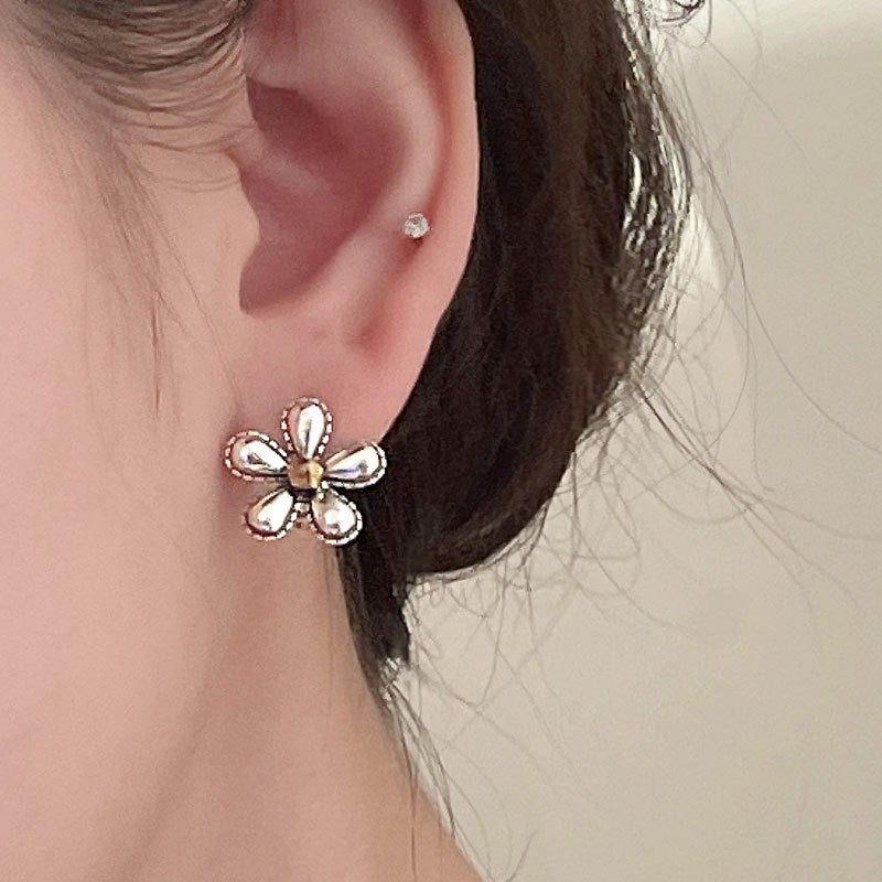 925 sterling silver antique oxidized flower latch-back earrings (5 pairs)