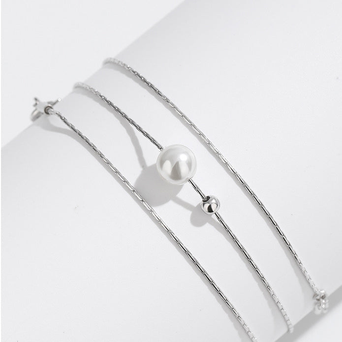 925 sterling silver bead and pearl snake bone chain necklace set of 5