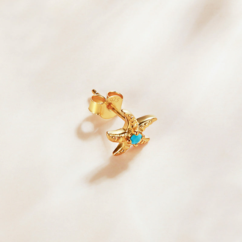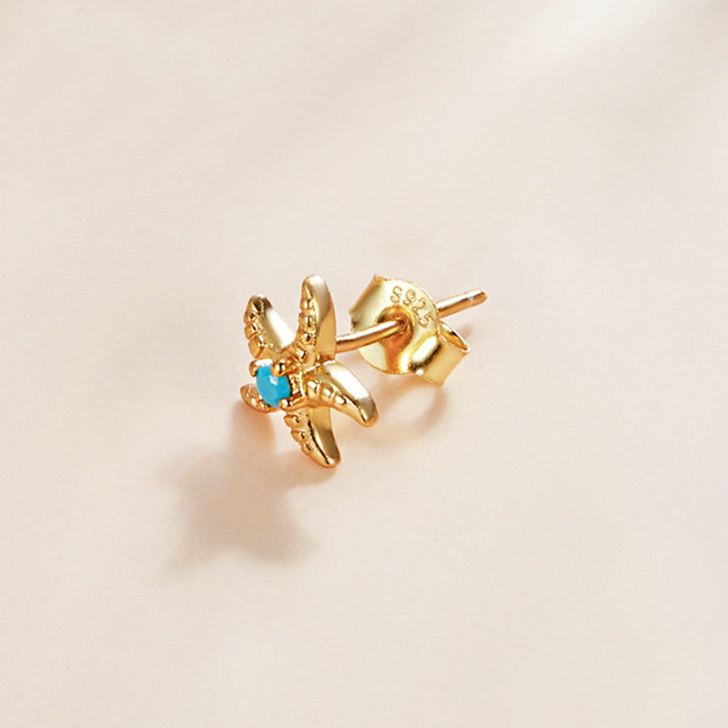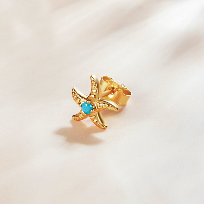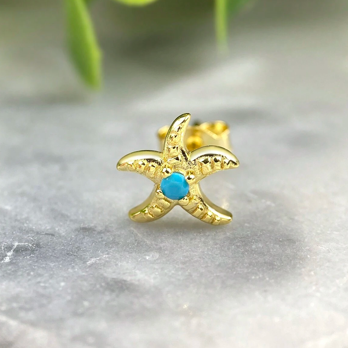925 sterling silver gold blue turquoise starfish earrings (5 pcs)