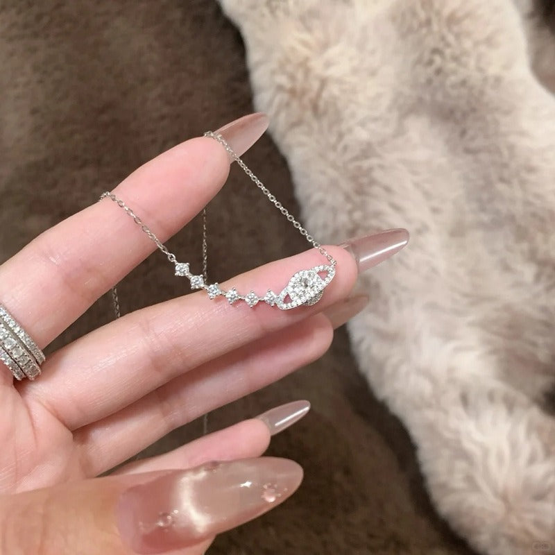 Elevate your jewelry collection with this celestial inspired necklace featuring a delicate star and planet design. Crafted to reflect the beauty of the night sky this sparkling necklace adds a magical touch to any outfit and is perfect for those who love cosmic themed accessories.
