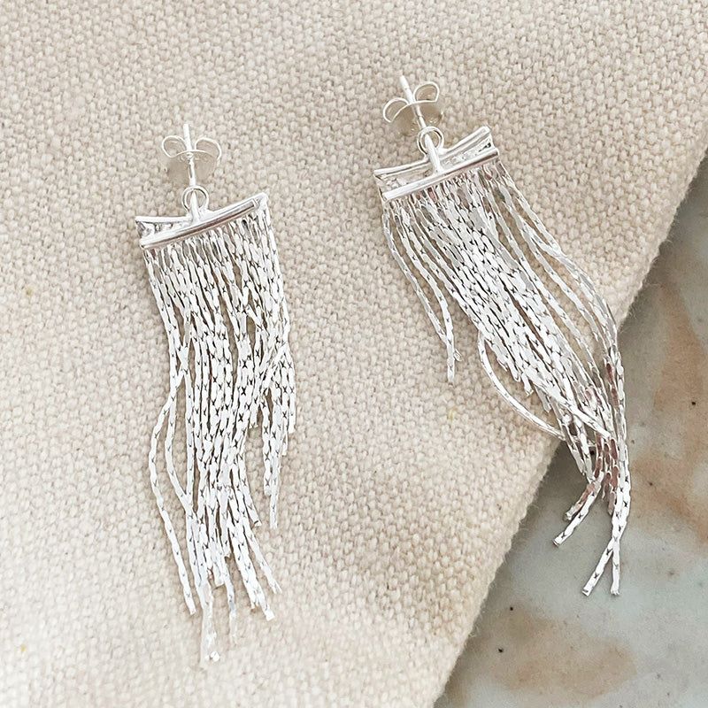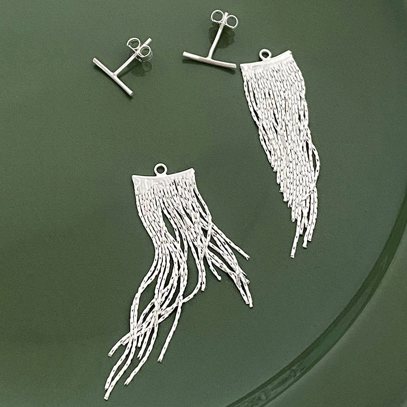 925 sterling silver chain tassels dangling earrings (5 pairs)