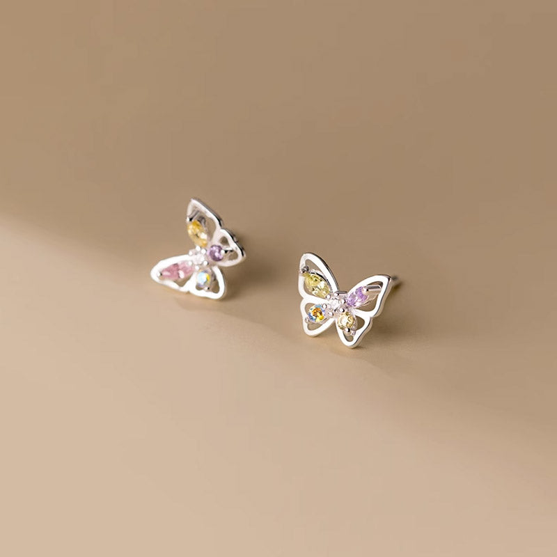 925 sterling silver cubic zirconia butterfly stud earrings (5 pairs)