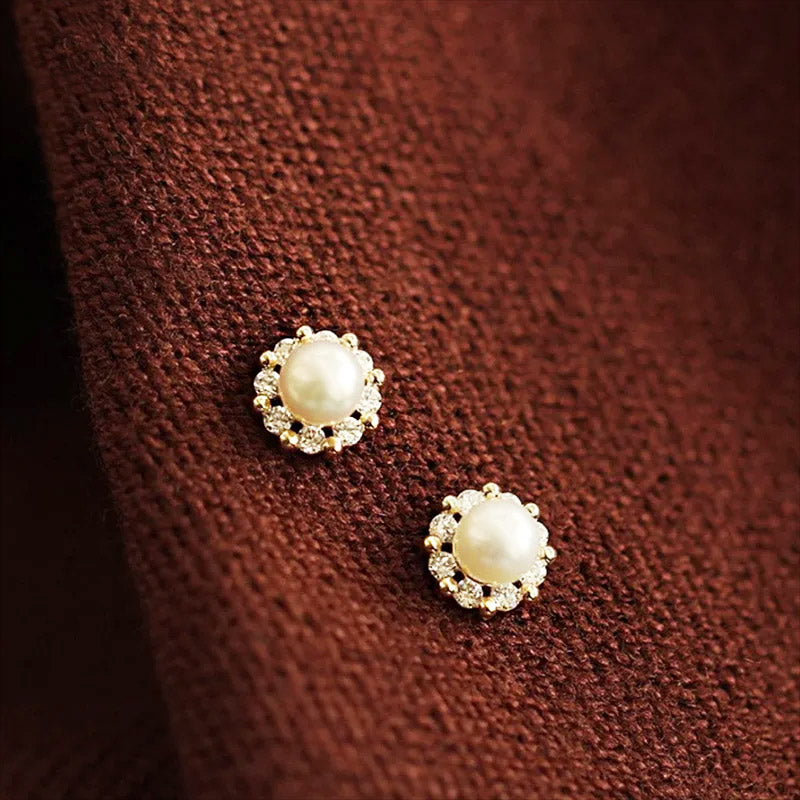 925 sterling silver dainty french simple zircon pearl stud earrings (5 pairs)