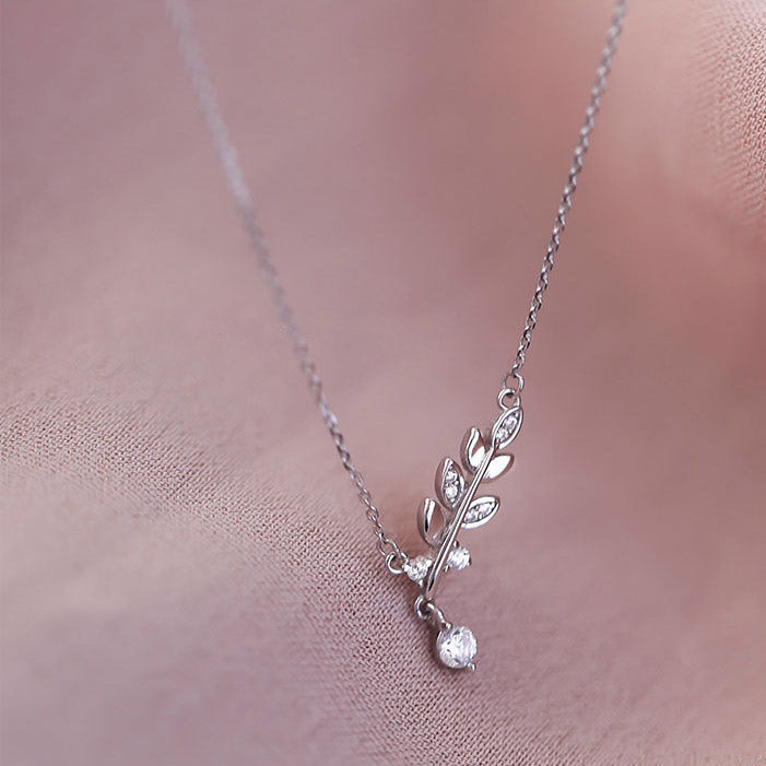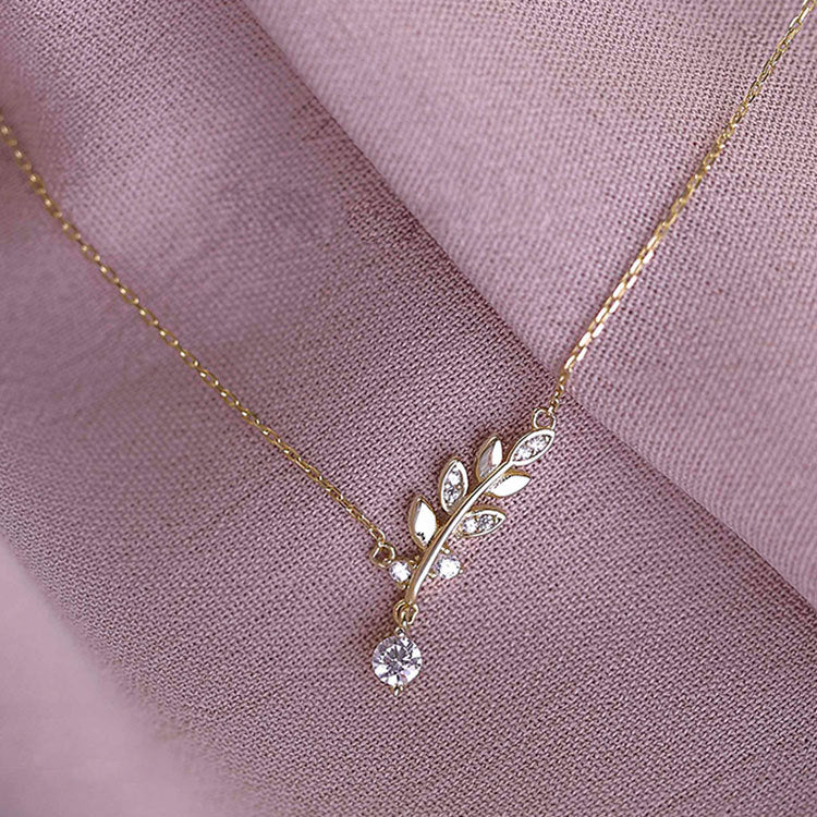 925 sterling silver delicate small CZ leaf necklace Set of 5