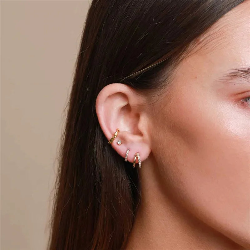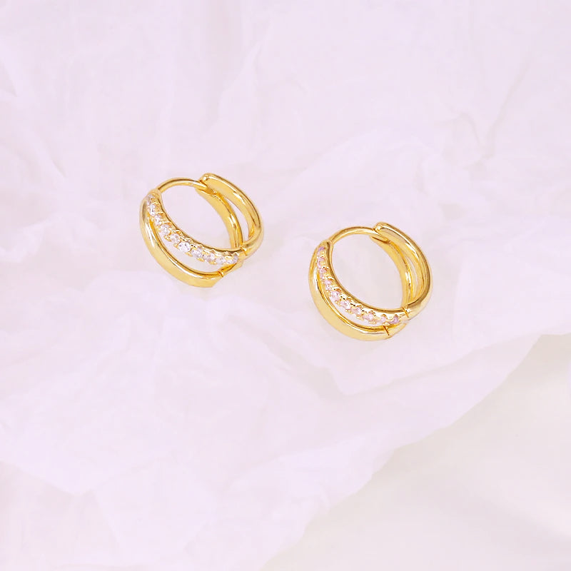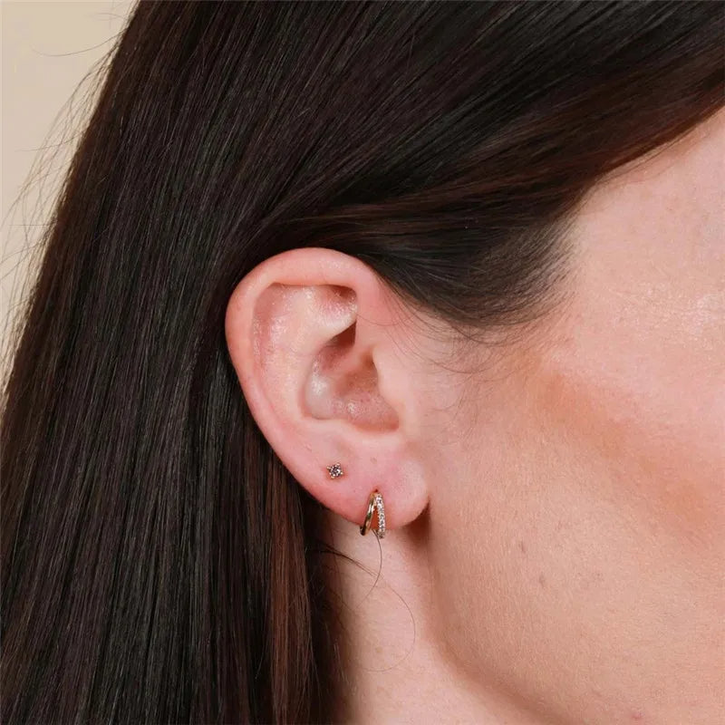 925 sterling silver double-circle cartilage hoop earrings (5 pcs)