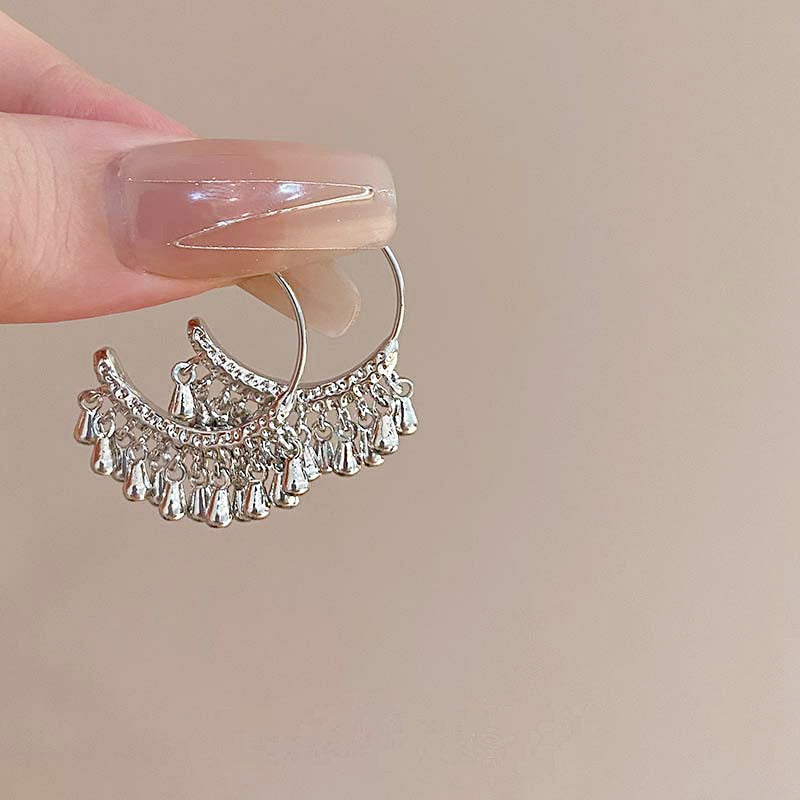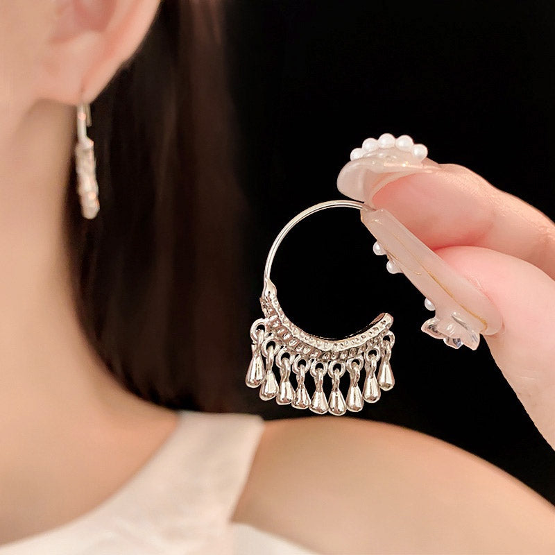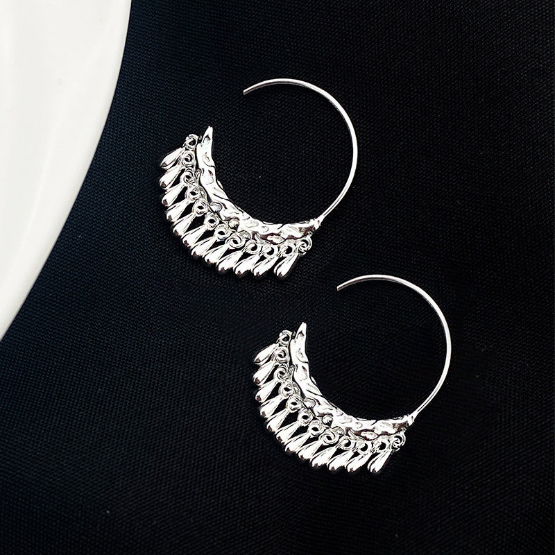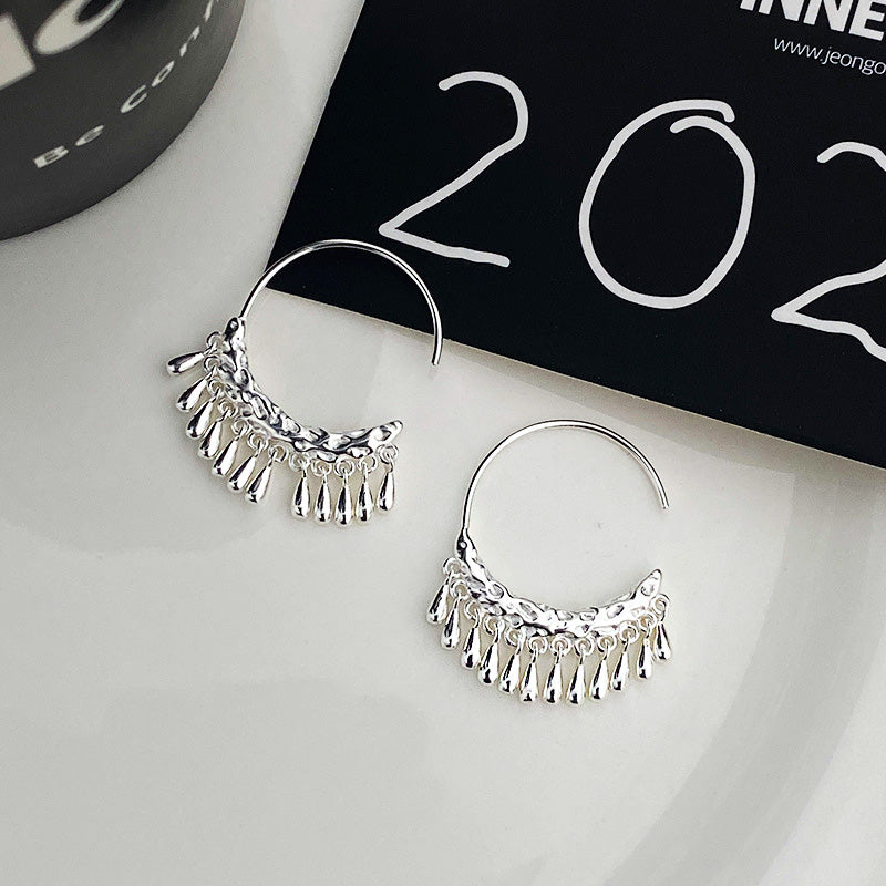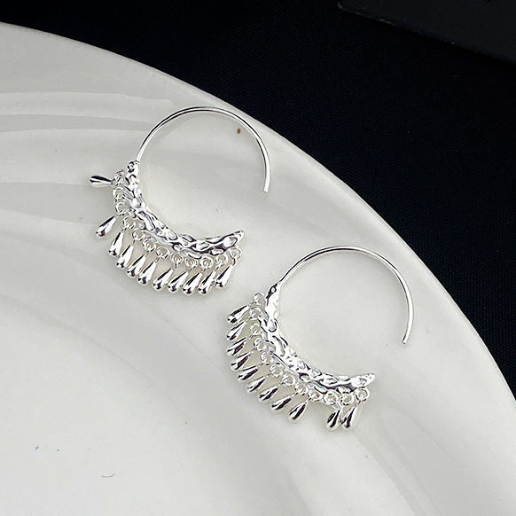 925 sterling silver hammered textured short tassel C shape hanging earrings (5 pairs)