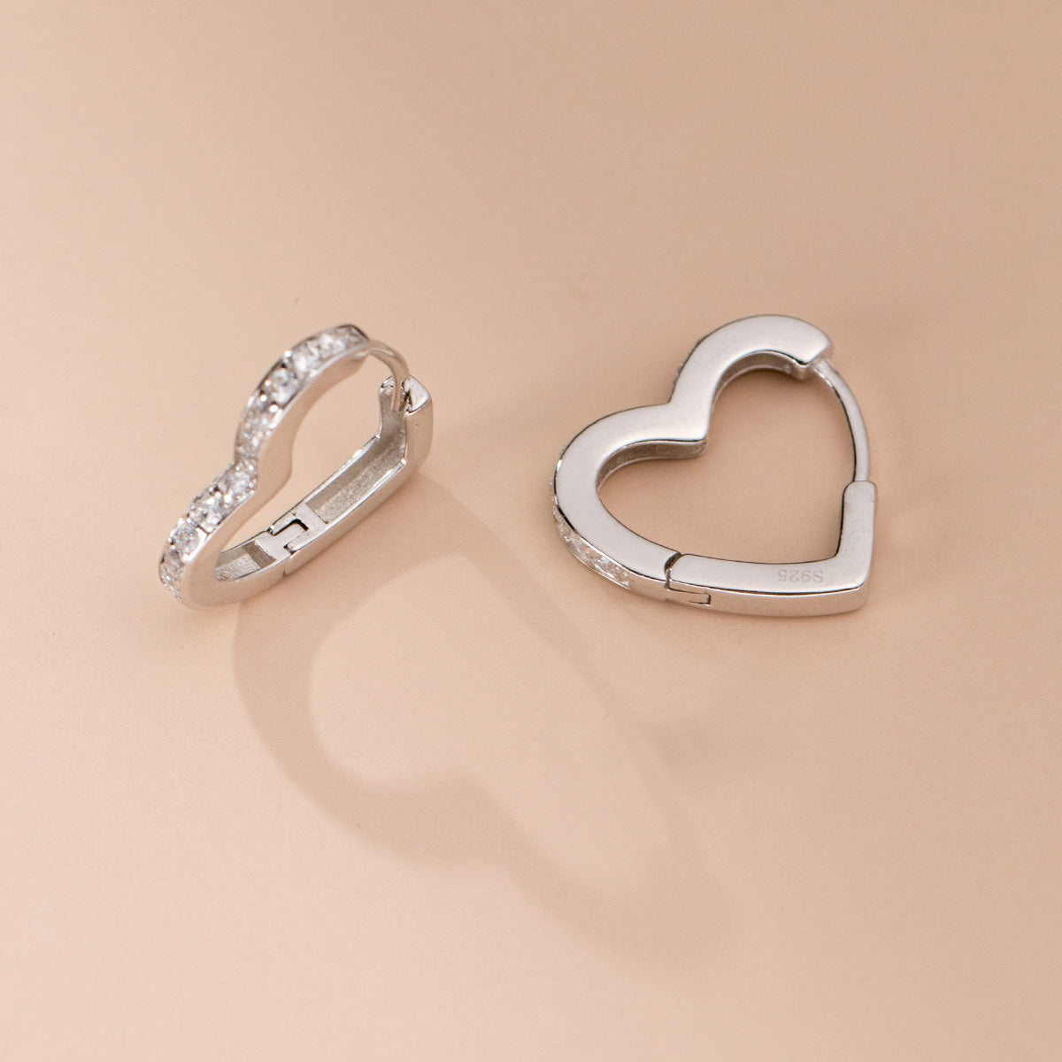 925 sterling silver heart hoop earrings with zircons (5 pairs)