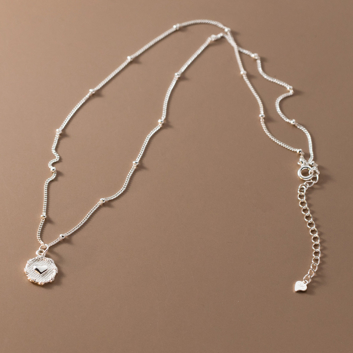 925 sterling silver heart pendant beaded chain necklace set of 5