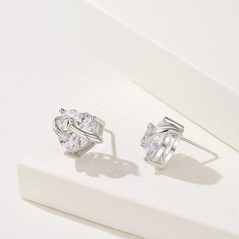 925 sterling silver hug heart zircon stud earrings (5 pairs)