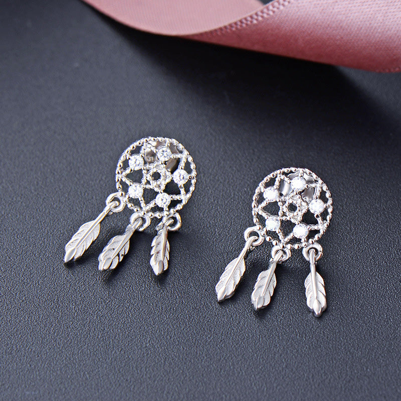 925 sterling silver lucky charm dreamcatcher stud earrings (5 pairs)