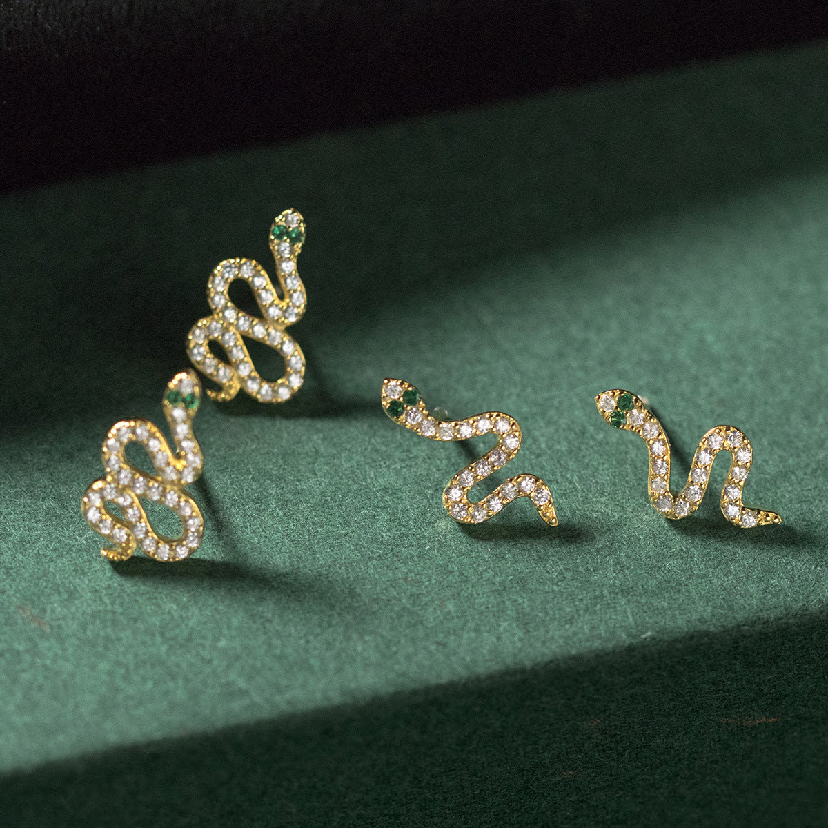 925 Sterling Silver Mini Sparkling Diamond Snake Design Stud Earrings (5 Pairs)