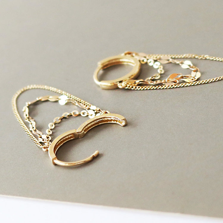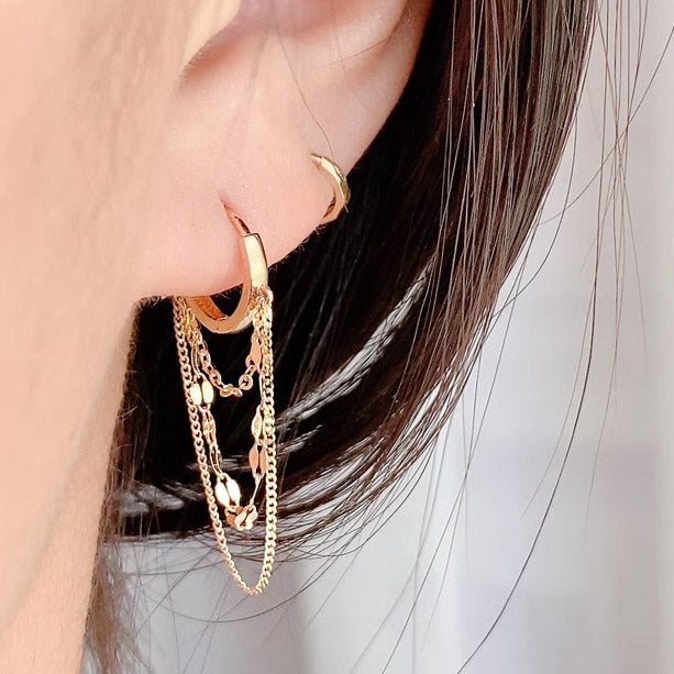 925 sterling silver multilayer chains hoop huggie dangle earrings (5 pairs)