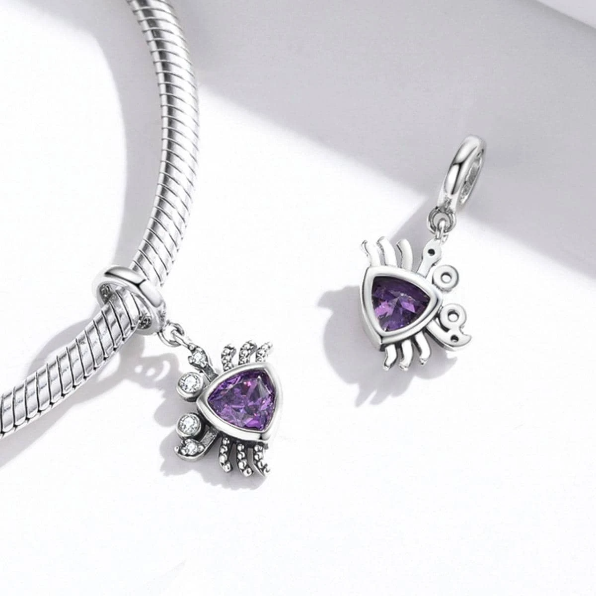 925 sterling silver ocean sea crab bead purple dangle charm pendant set of 5