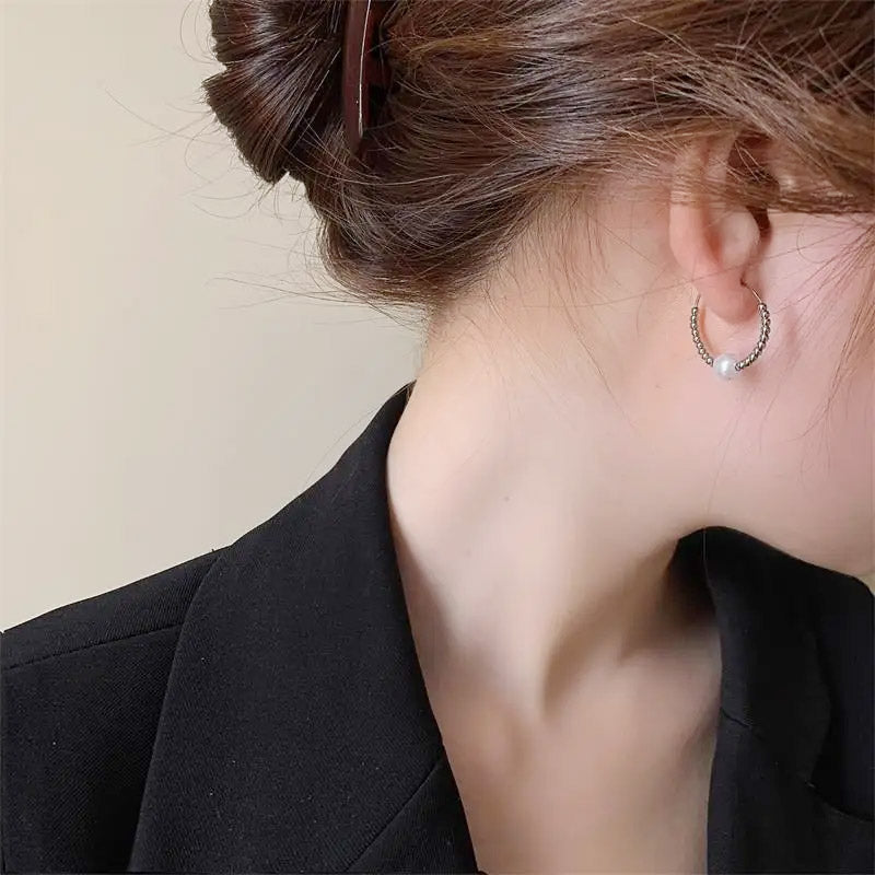 925 sterling silver pearl beads ear buckle hoop earrings (5 pairs)
