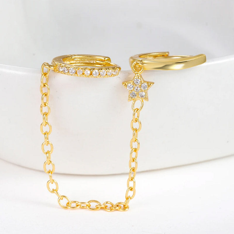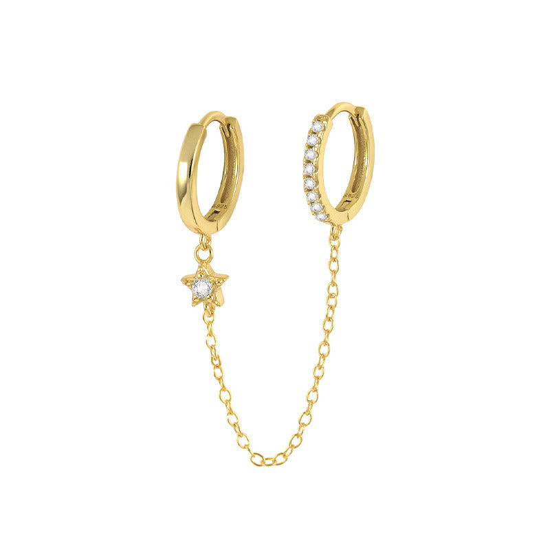 925 sterling silver piercing star zircon chain hoop earrings (5 pcs)
