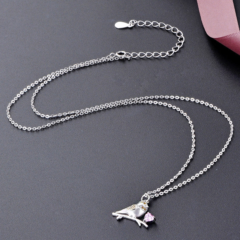 925 sterling silver pink heart zircon sparrow bird pendant choker necklaces set of 5