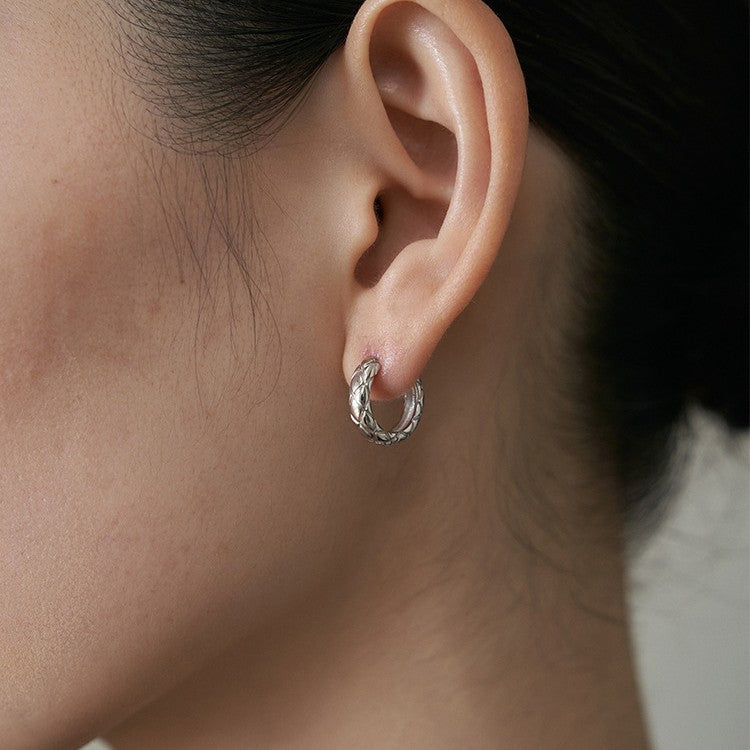 We offer light luxury jewelry that blends timeless elegance with modern refinement. These hoop earrings feature a classic quilted pattern, beautifully crafted in 925 sterling silver and finished with a sleek platinum plating. Designed for effortless sophistication, they elevate both casual and formal looks with subtle texture and shine.