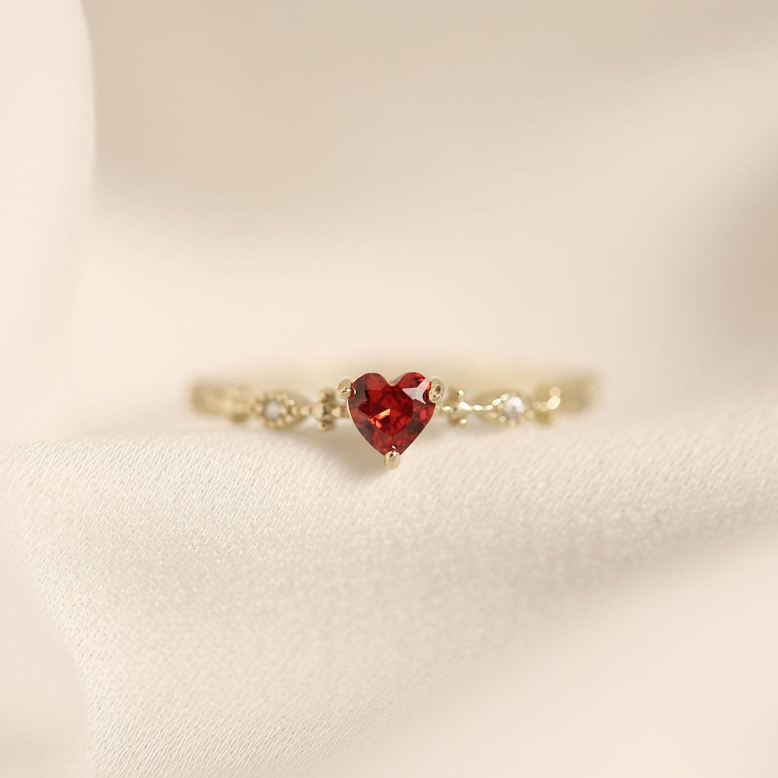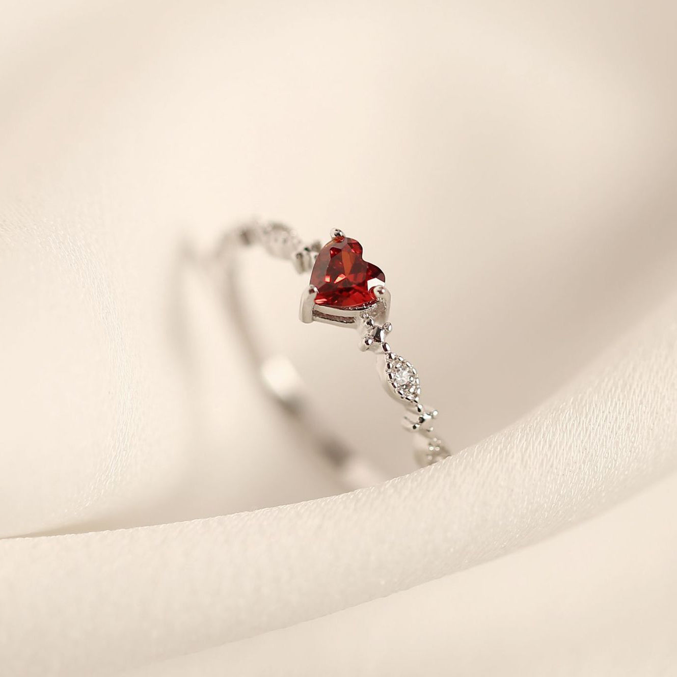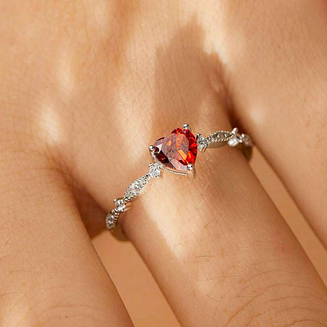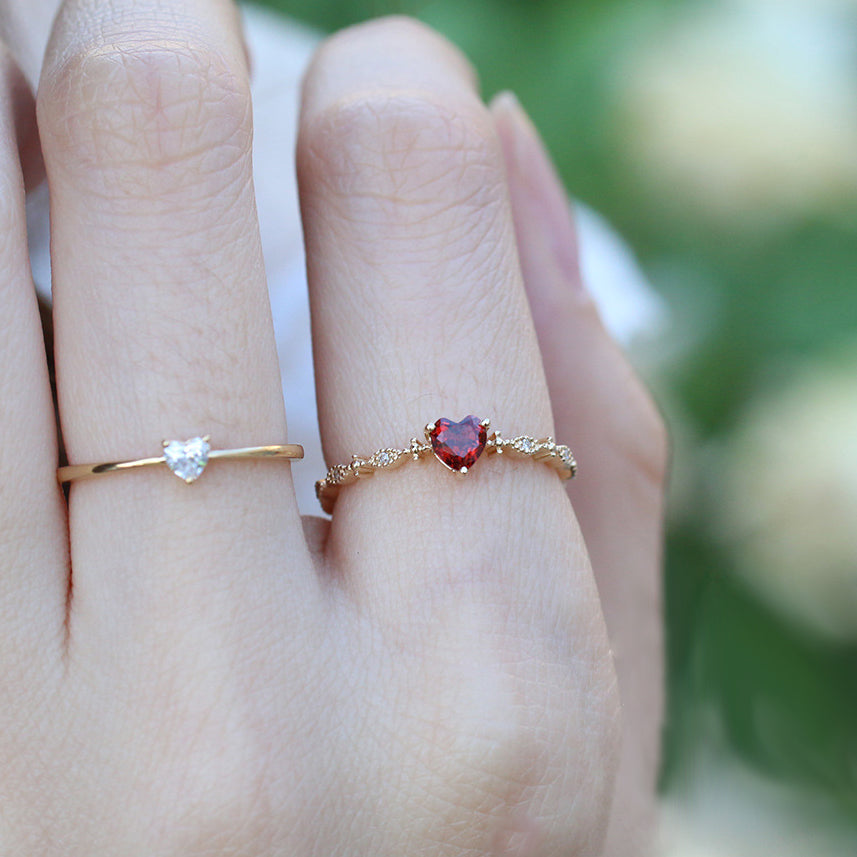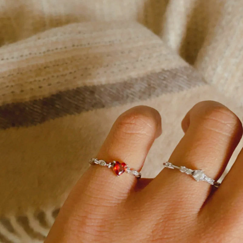 925 sterling silver red heart-shaped ruby ring Set of 5