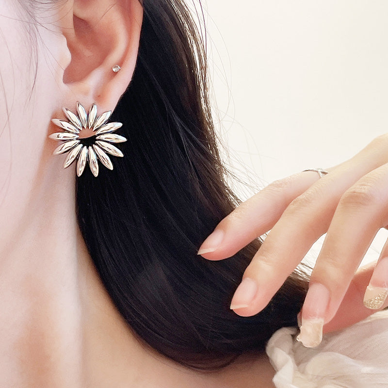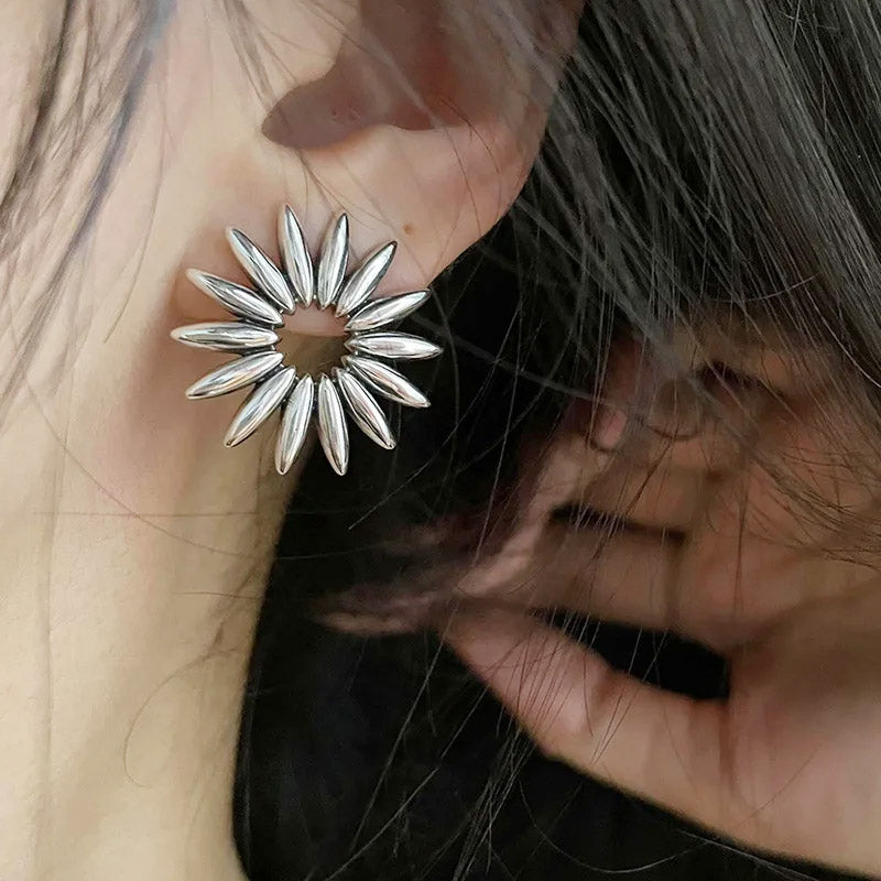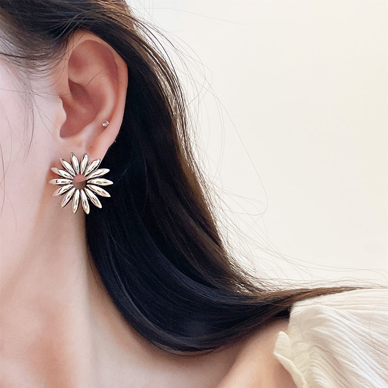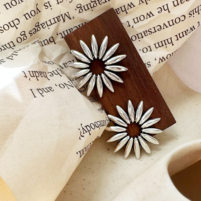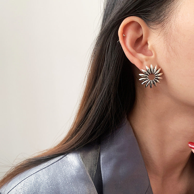 925 sterling silver retro sunflower vintage hollow daisy flower stud earrings (5 pairs)