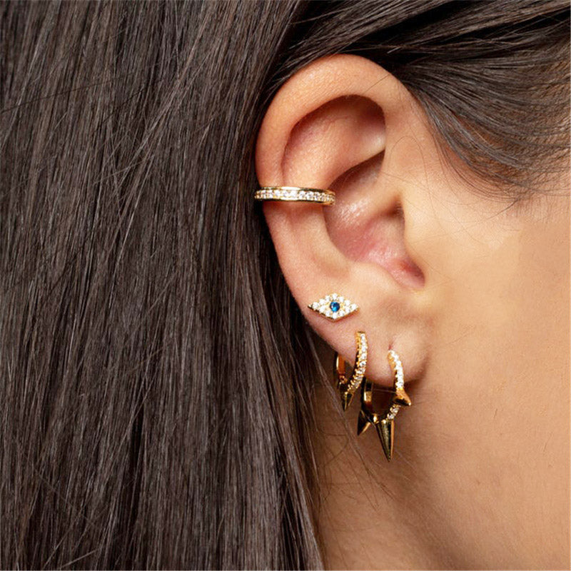925 sterling silver rivet punk-style hoop huggie earrings (5 pairs)