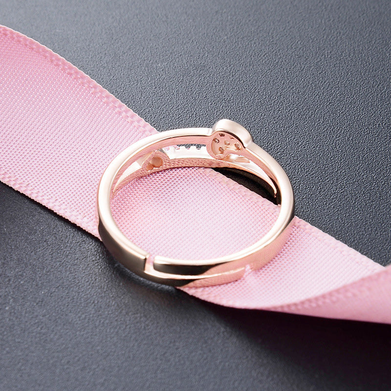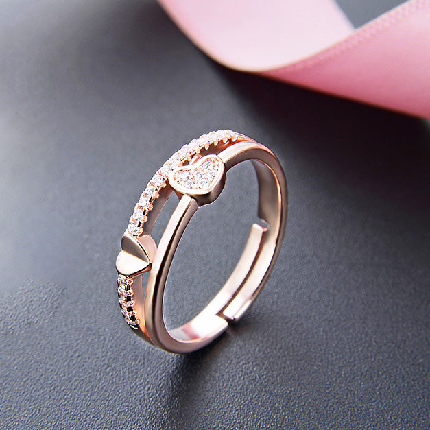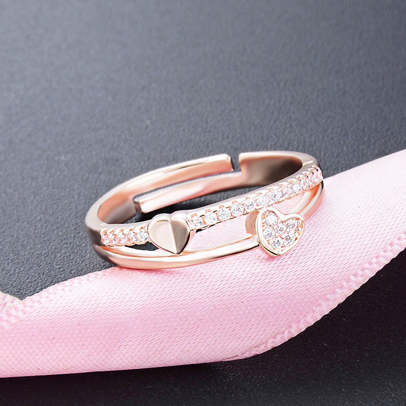 925 sterling silver rose gold double layered heart CZ opening ring Set of 5