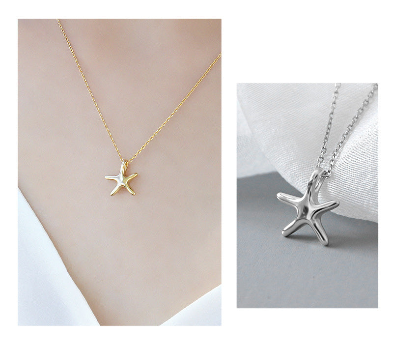 925 sterling silver sea beach simple geometric starfish necklace Set of 5