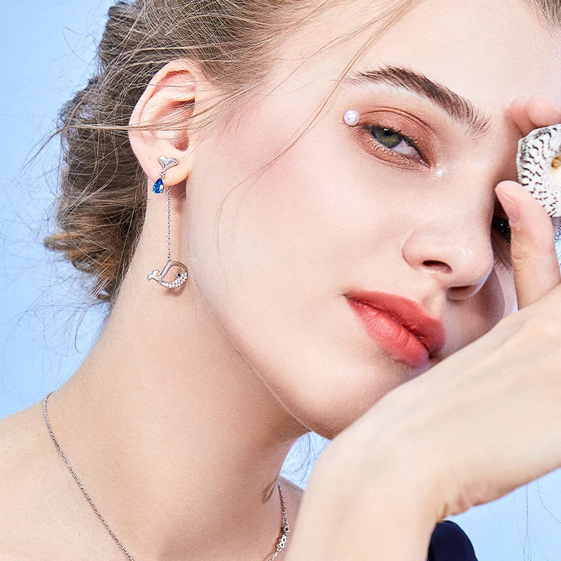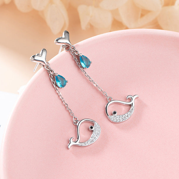 925 sterling silver sea blue stone whale chain drop earrings (5 pairs)