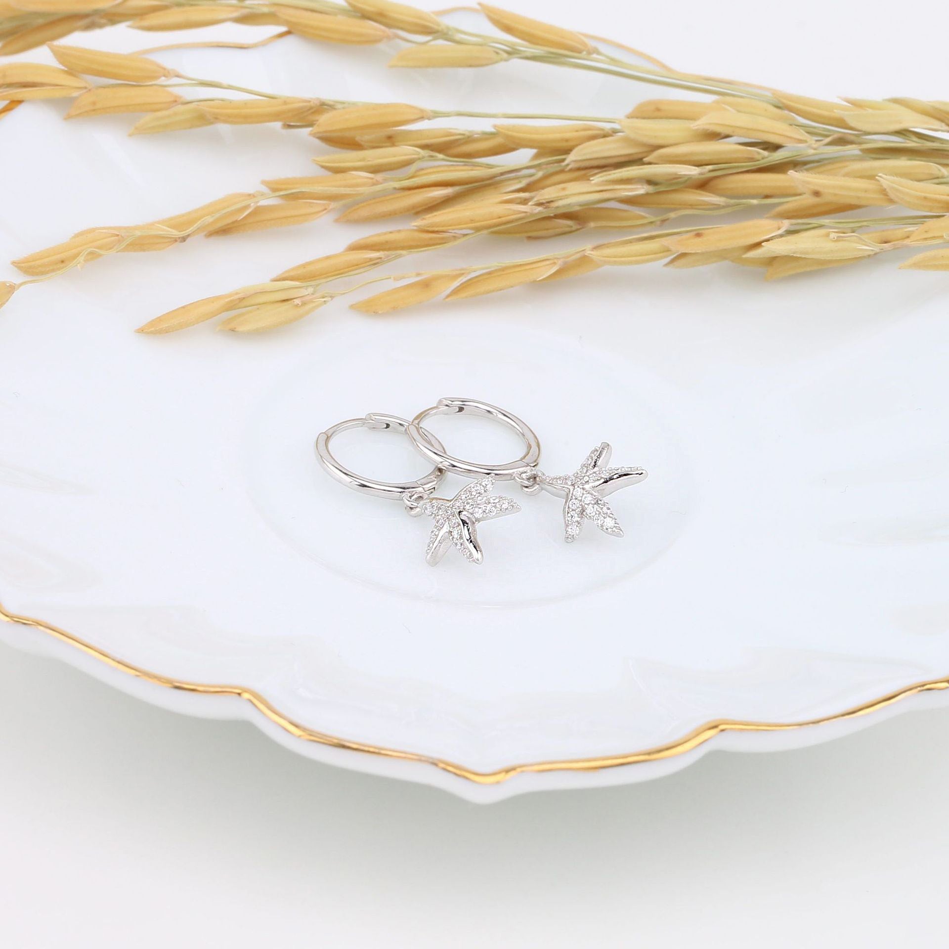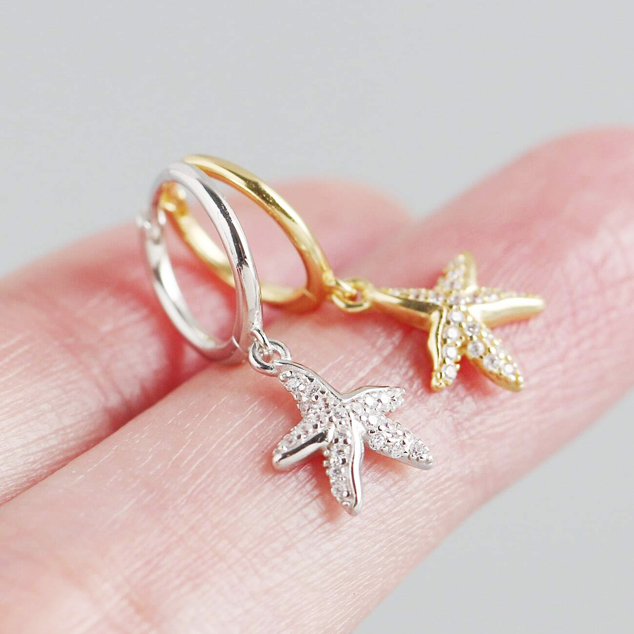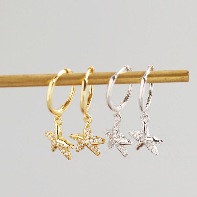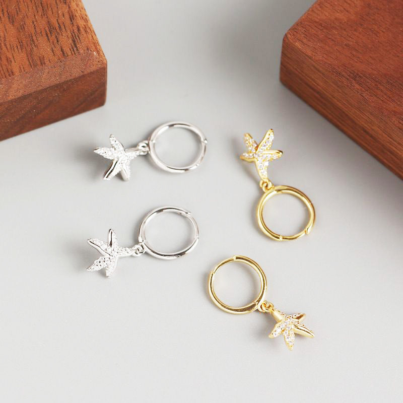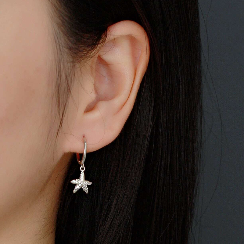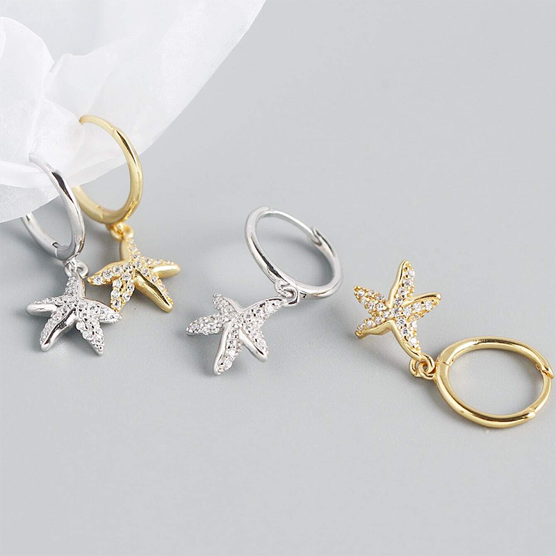 925 sterling silver sea starfish huggie hoop earrings (5 pairs)