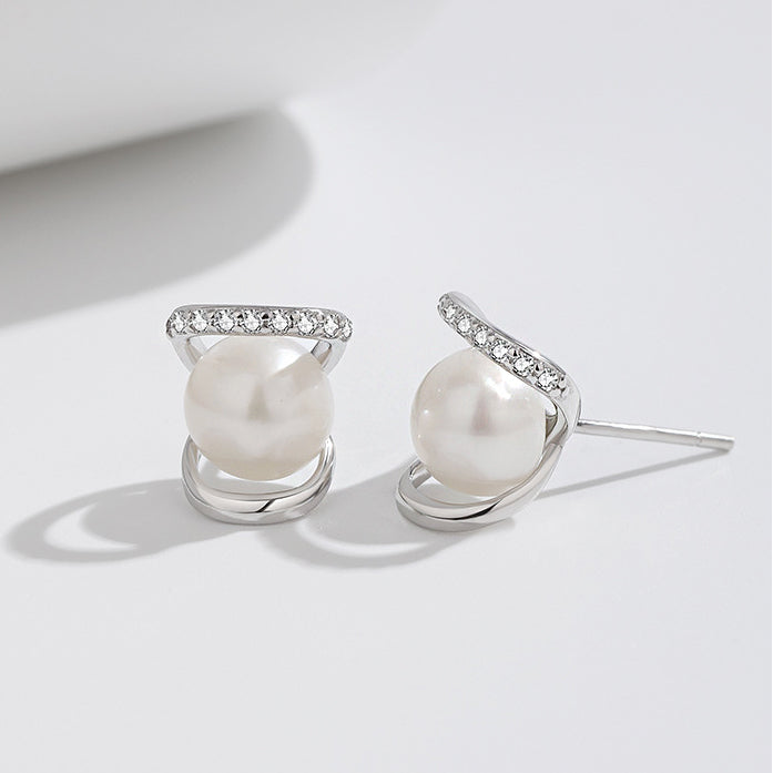 925 sterling silver simple cz single pearl stud earrings (5 pairs)