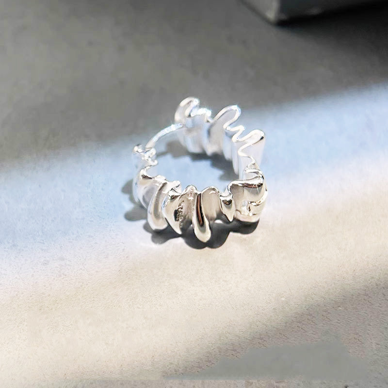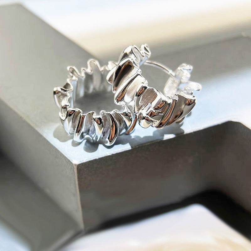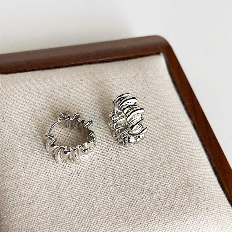 925 sterling silver simple irregular pleated C-shaped hoop earrings (5 pairs)
